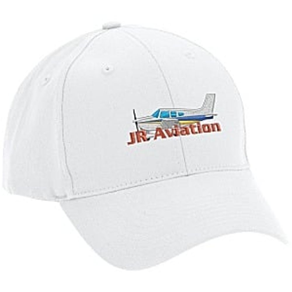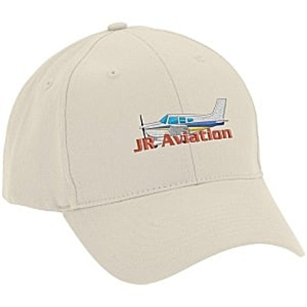 Keep your crew and supporters aligned with your brand through custom caps. This brushed cotton twill structured cap features a pre-curved visor and 6-panel construction. Adjustable hook-and-loop closure provides a snug, comfortable fit.